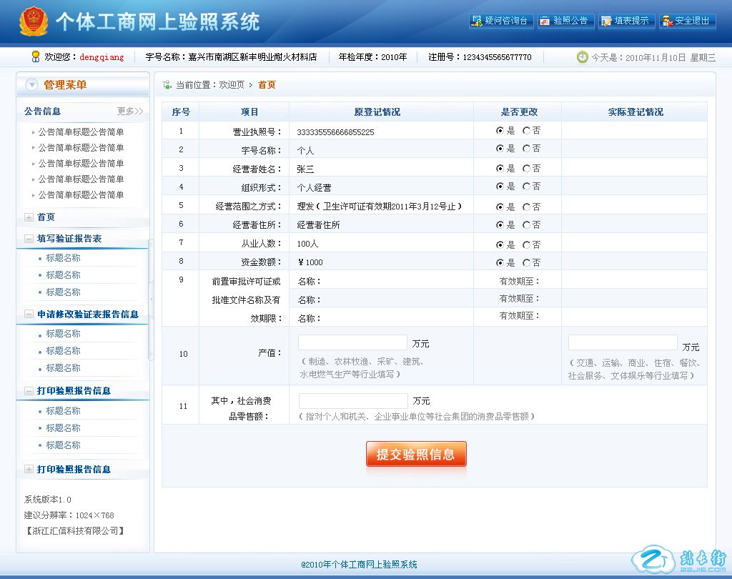 个体工商网上验照管理系统界面