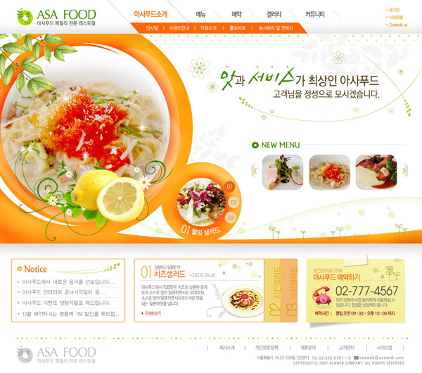 >>餐饮美食类模板PSD分层_韩国网页设计模板
